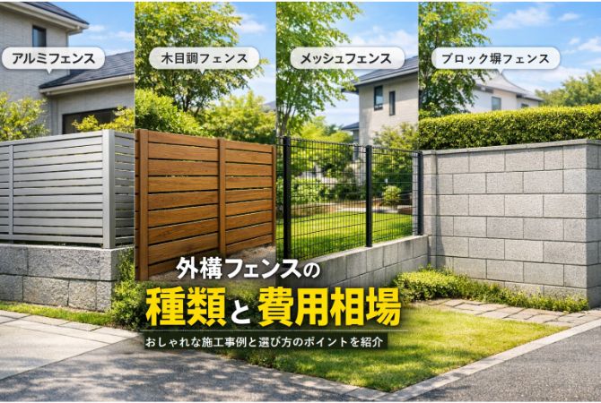 外構フェンスにはさまざまな素材・形状があり、それぞれ特徴や費用相場が異なります。